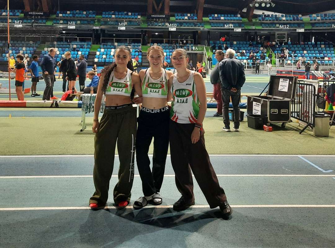 Nous avions 3 athlètes qualifiés aux Championnats Régionaux Minimes (U16) en salle à Liévin ce week-end. Nos 3 jeunes athlètes ont honoré leurs qualifications, parvenant à améliorer des records personnels et à monter les échelons aux classements par rapport aux bilans qualificatifs. Elles finissent toutes les 3 finalistes (dans les 8 meilleures de la région Hauts-de-France). Léna Julien a réussi à faire descendre son chrono sur 1000m et 6ème en 3'16"29. Très joli résultat pour elle qui a du couper ses entraînements durant 6 semaines en novembre et décembre. Petit à petit elle retrouve son meilleur niveau et sera à suivre cet été. Nell Olympio prend une belle 5ème place en longueur avec 4m93. Elle a failli faire un gros coup sur son dernier mordu d'un millimètre !!! Partie remise pour cet été également tout en sachant qu'elle a encore battu son record sur 50m lors de cette journée. Enfin, Lou Robino a sorti son meilleur jet au poids le jour J. Elle devient vice-championne des Hauts-de-France au poids, ce qui est très prometteur pour elle qui n'est que 1ère année de la catégorie comme Nell. Bravo à nos jeunes filles qui montent et aussi à Lucile Lervant qui a passé son examen de Jeune Juge Nationale. L'avenir de Mouy-ATAC semble assurée avec ces 4 jeunes et leurs équipiers qui ont assurés la semaine dernière lors du Challenge Equip'athlé départemental. Félicitations à Anne Claire Fourdraine qui, une semaine après avoir honoré sa qualification aux Championnats de France de cross à Carhaix (Bretagne), a décroché sa qualification pour les Championnats de France des 10kms sur route. Elle rejoint Léandre Baticle déjà qualifié pour ces championnats qui auront lieu à Troyes le 10 mai. C'est une belle saison hivernale qui se termine et çà va très vite basculer vers la saison estivale sur piste et sur route...