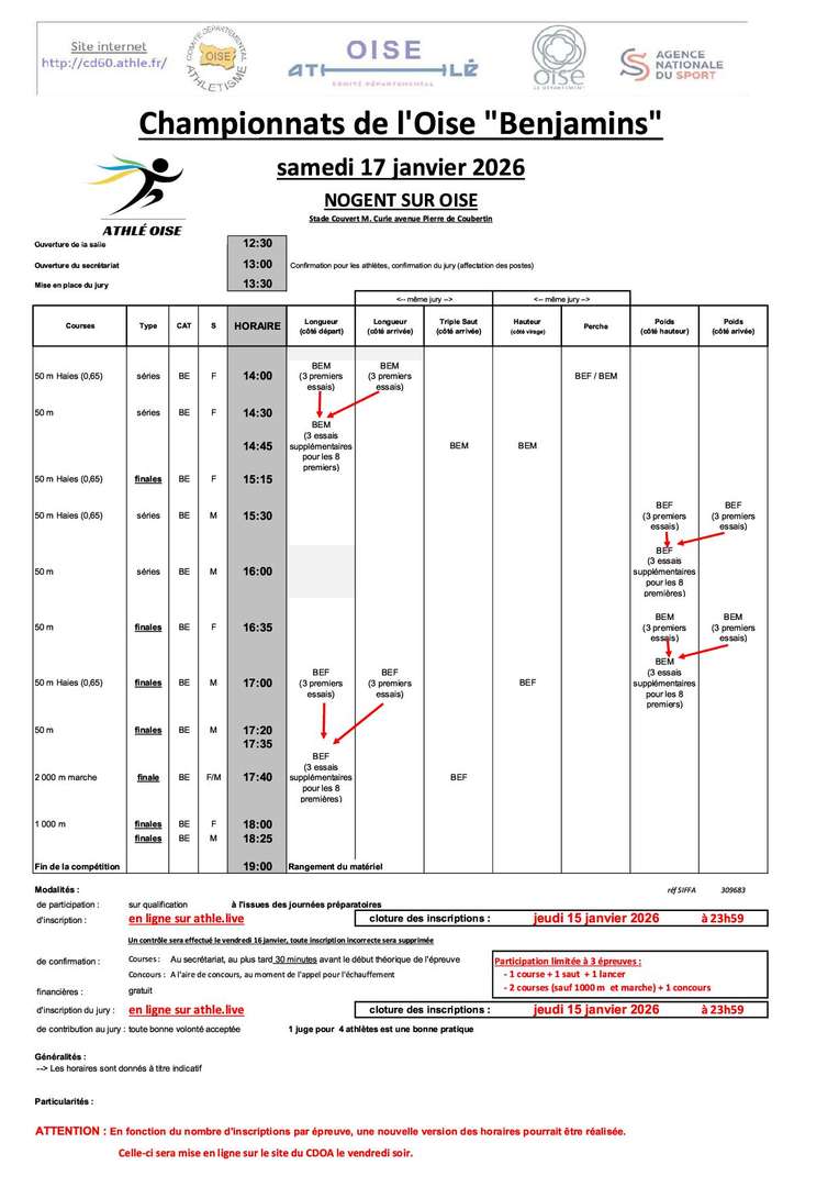 Championnats de l'Oise en salle Benjamins